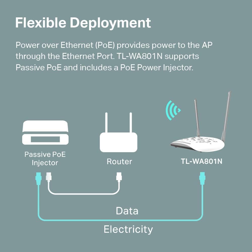 TP-Link WiFi Access Point TL-WA801N, 2.4Ghz 300Mbps, Supports Multi-SSID/Client/Bridge/Range Extender, 2 Fixed Antennas, Passive PoE Injector Included