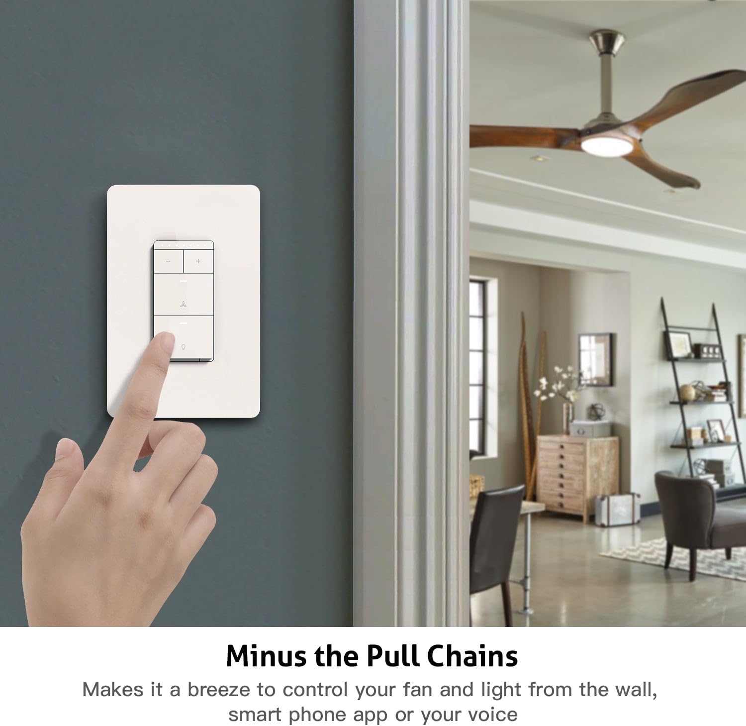 Smart Scheduling & Voice Control: Set timers or schedules to turn lights and fans on/off at specific times with preset brightness or speed. Activate random lighting while on vacation to enhance home security. Works with Alexa and Google Assistant (Not HomeKit) for hands-free control—perfect for dark rooms or when your hands are full