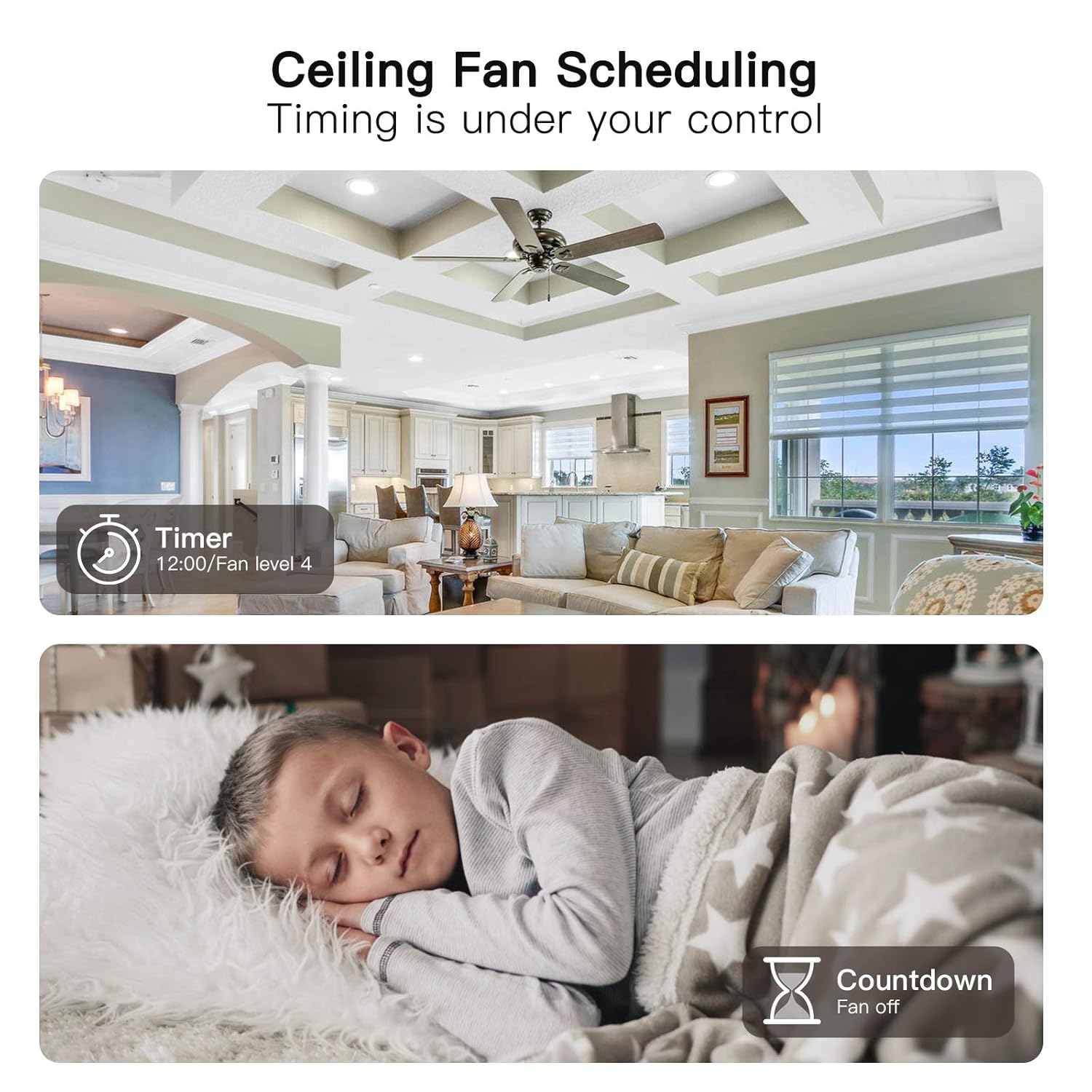 Hands-off Voice Control: The smart fan control is compatible with both Alexa and Google Home(Not support Homekit). The smart ceiling fan can be operated with a simple voice command, such as “Alexa, set the fan to 4”. It is convenient for children to adjust the fan speed when they cannot touch the ceiling fan controller