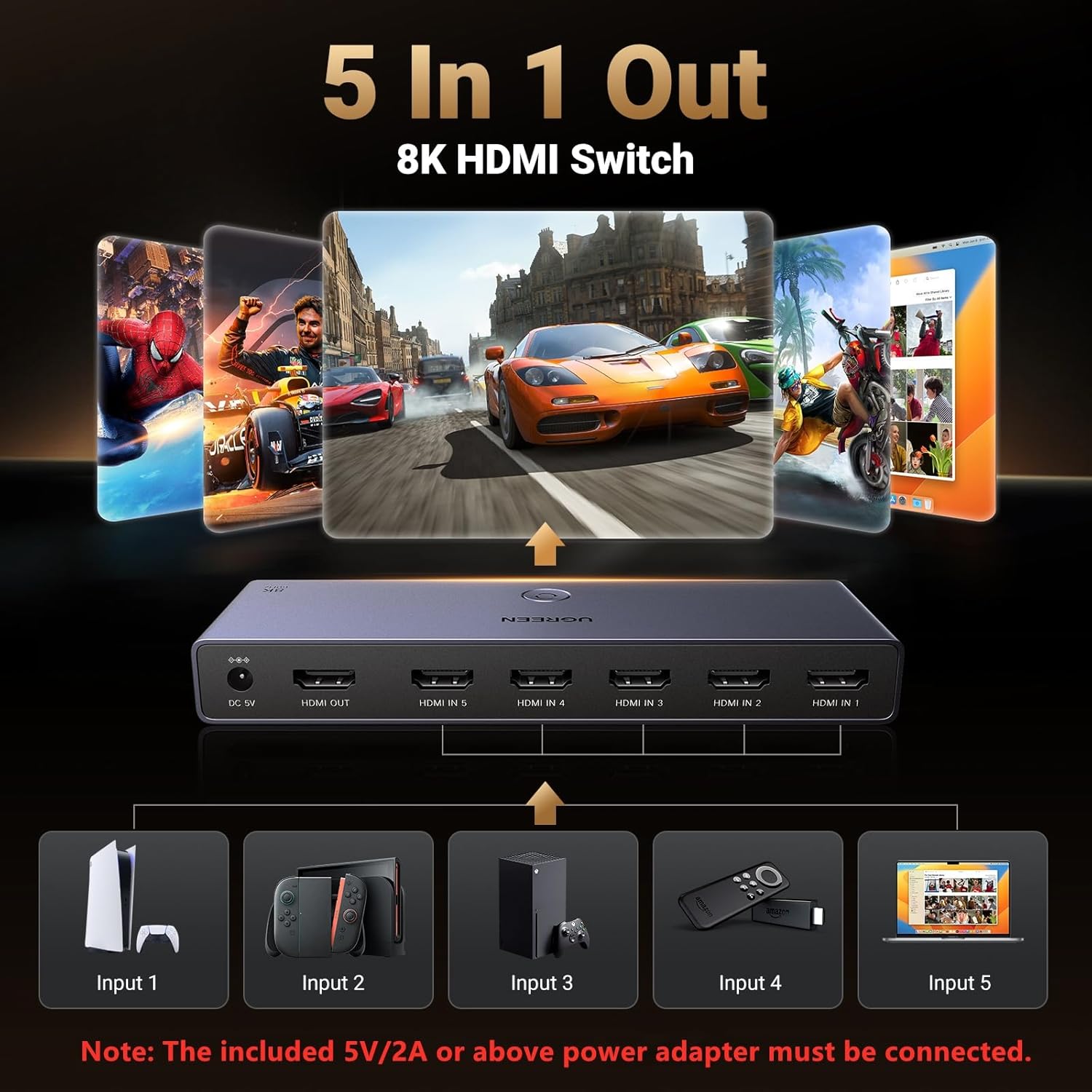 12 reviews for UGREEN 8K@60Hz HDMI Switch 5 in 1 Out Aluminum Support 4K@240Hz HDR10+ HDCP 2.3 CEC HDMI 2.1 Switcher Splitter with Power Adapter Compatible with PS5/4 Xbox Nintendo Switch Roku Apple TV Fire Stick