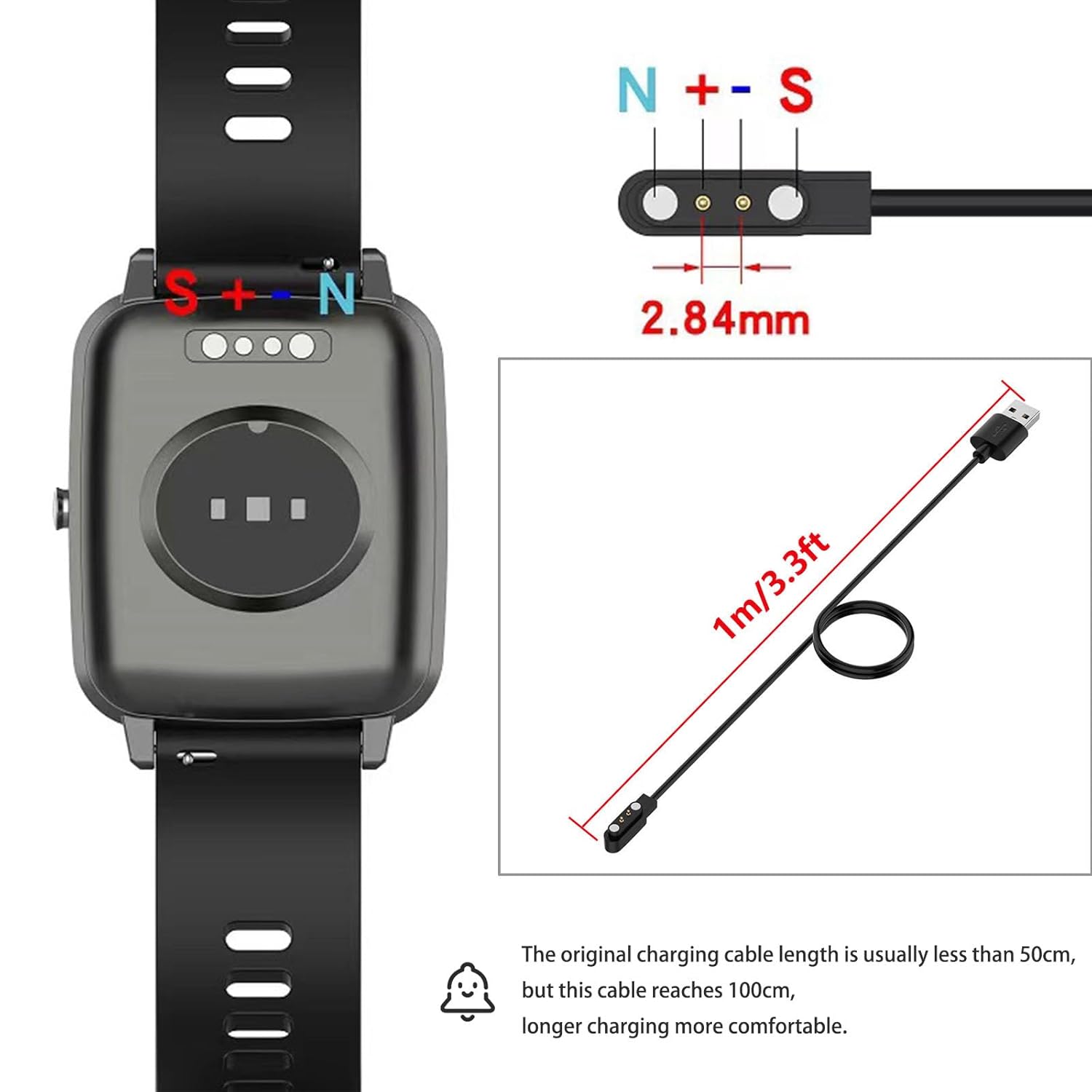 VeryFit Smartwatch Charger, Fit for ID208, GTX20, IDW13/15/16/17, IDW19/20/25/26/28 and More, Replacement Magnetic USB Cable for Fast and Easy Charging, 3.3 ft, (ID-Cable)