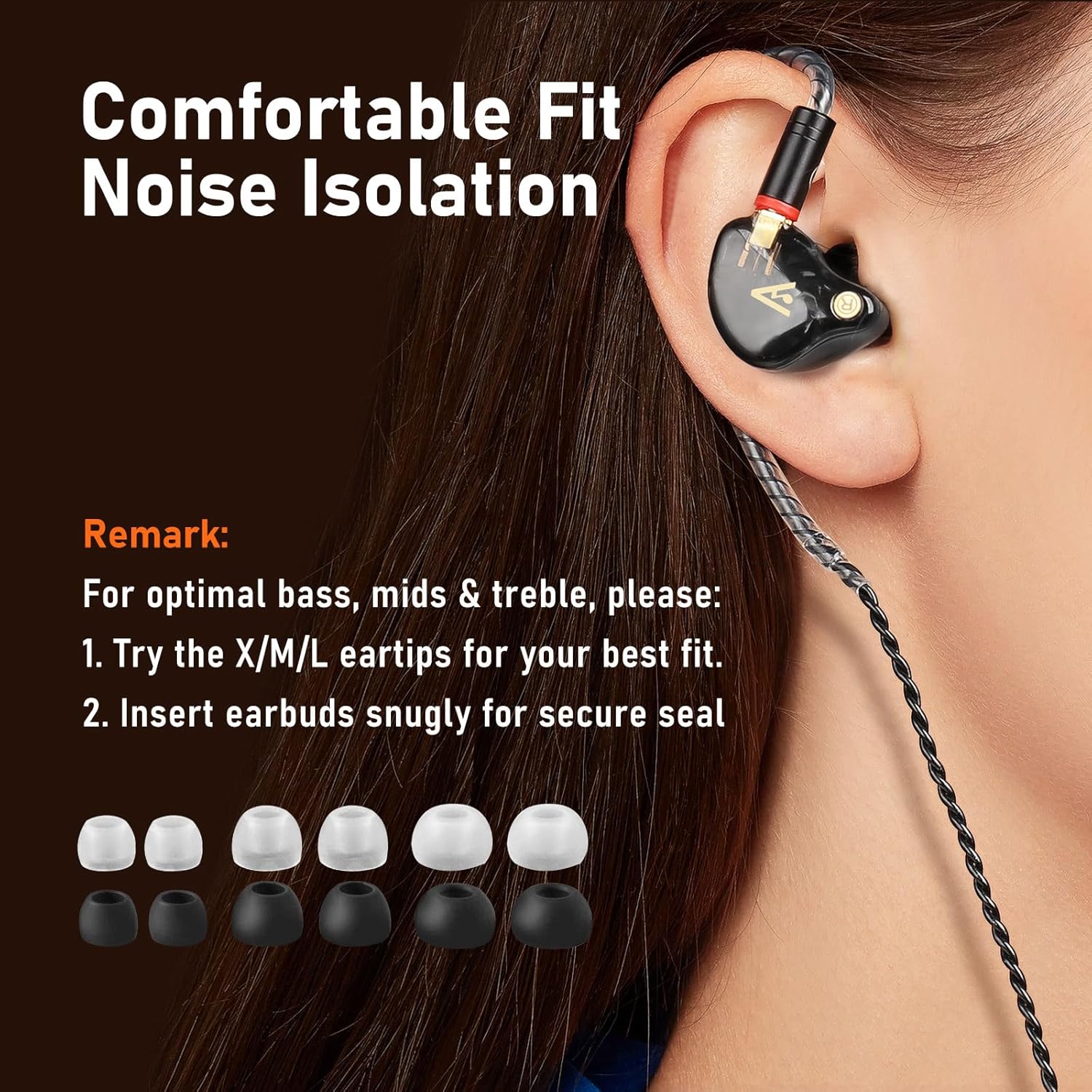 Experience the perfect blend of excellent sound, unmatched comfort, and striking design with Vibes 202M in-ear monitors. For optimal bass, mids & treble, please: 1) Try the X/M/L eartips for your best fit; 2) Insert the earbuds snugly for your secure seal.
