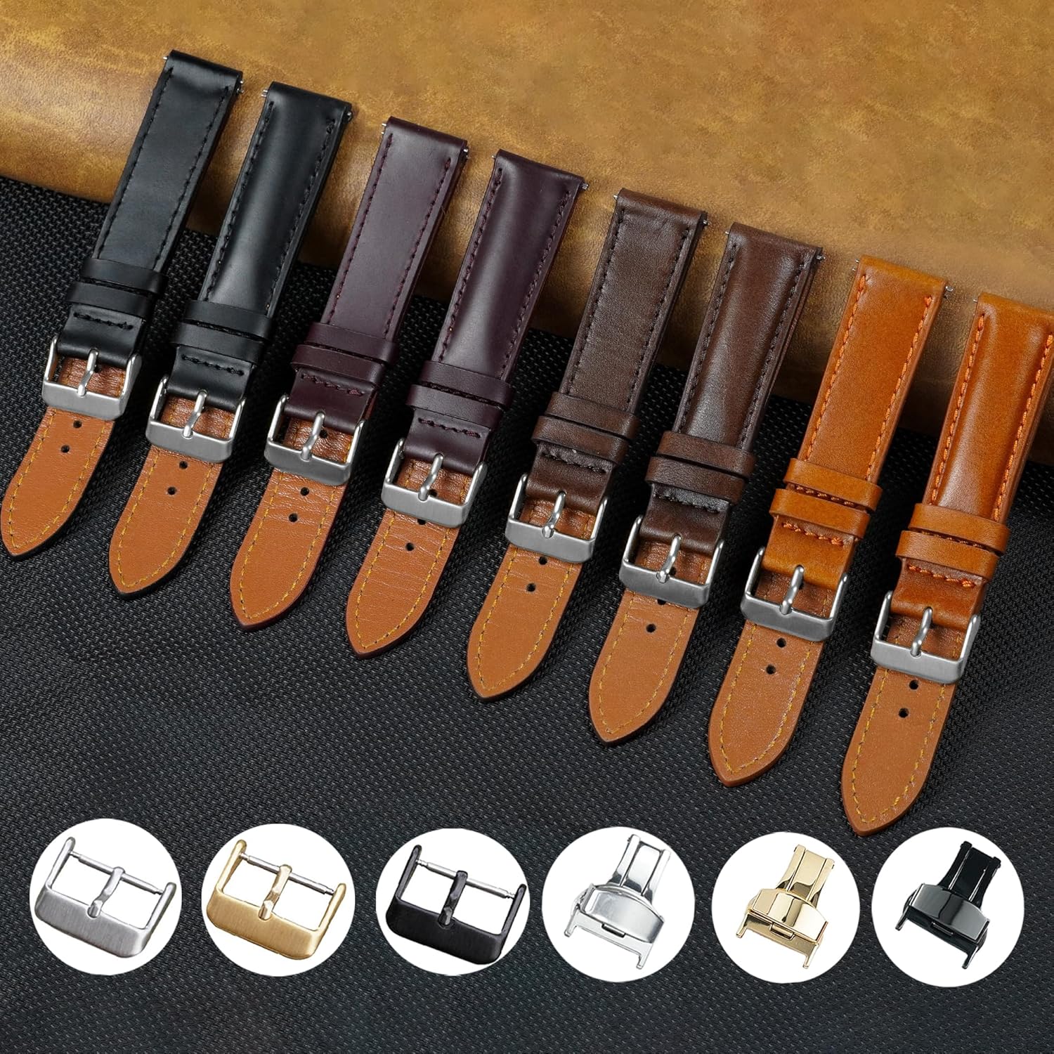 Vintage Leather Watch Band Quick Release Leather Strap For Men Women Handmade Extra Soft Watch Wrist Band Elegant Replacement Stainless Steel Strap 18mm 19mm 20mm 21mm 22mm