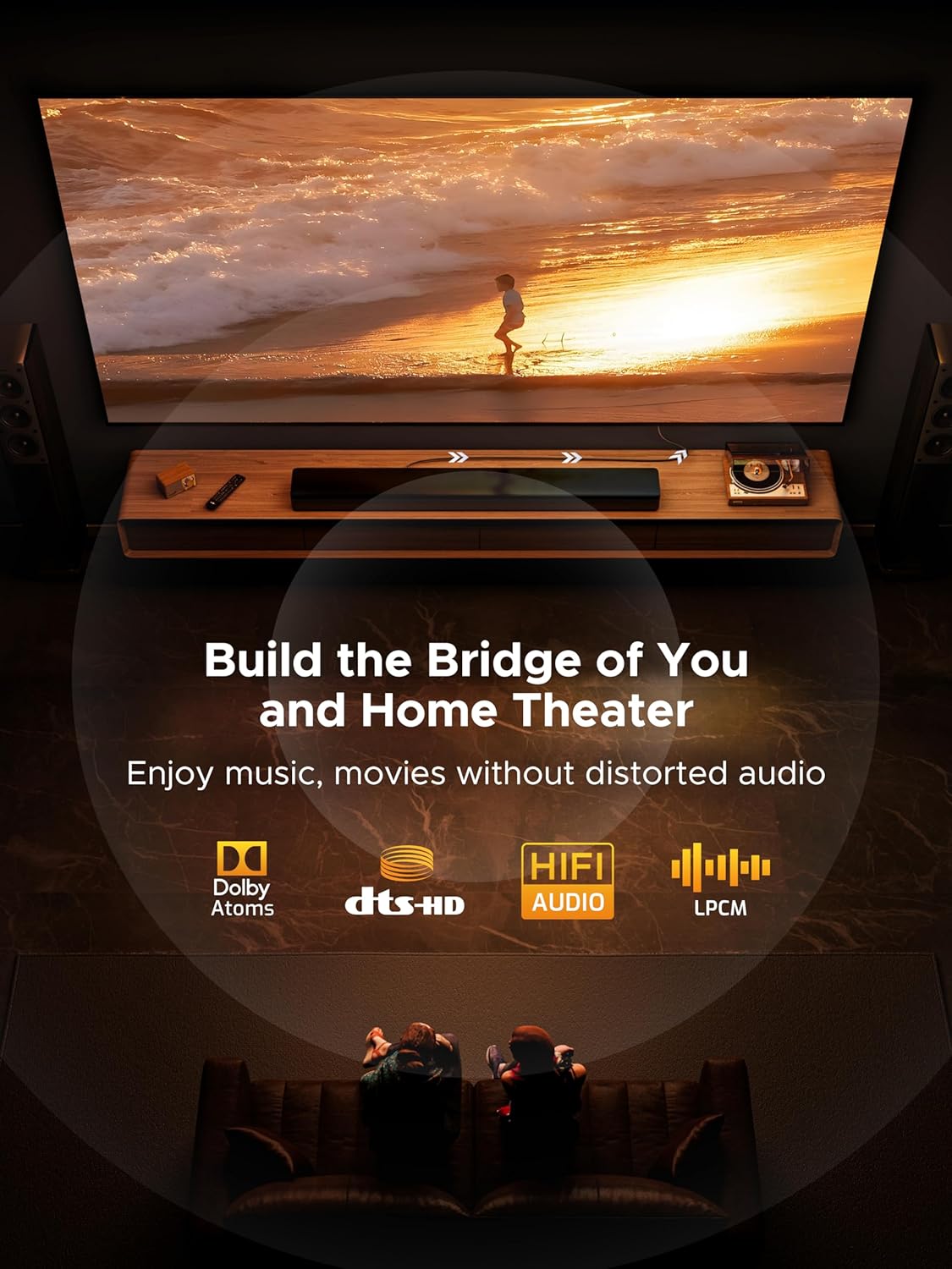 【Ultra Durability】Carefully-chosen nylon material is much more durable than plastic cable. Flexible and lightweight. CL3-rated. Safe for in-wall installation. Aluminum case and gold-plated connector make sure this digital audio cable remain the best performance even after thousands times of using.