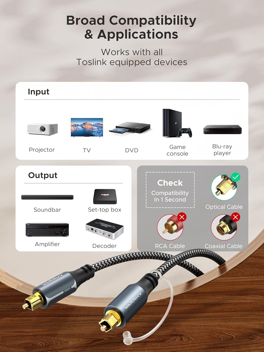 WARRKY Optical Cable for Soundbar provide reliable connection for uninterrupted audio.WARRKY Optical Cable for Soundbar provide reliable connection for uninterrupted audio.