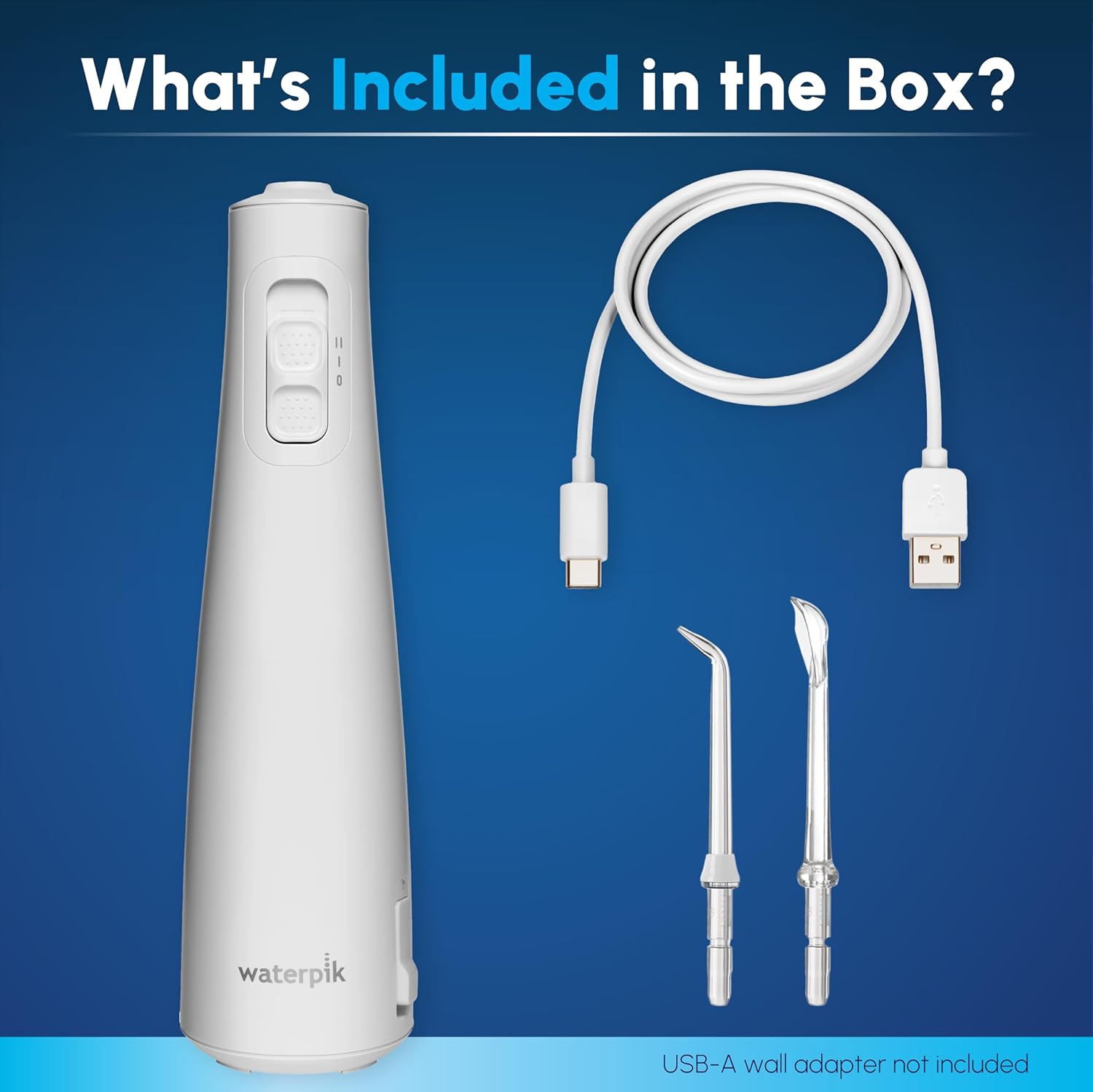 The rechargeable Waterpik Cordless Pulse water flosser is a great choice for smaller bathrooms, travel, and use in the shower. Original version includes 2 Waterpik Precision tips for general use and newer version includes 1 Precision tip and 1 tongue cleaner tip (you may receive either product as the item transitions to the newer version). Also includes a USB-C to USB-A charging cable (wall adapter not included), recharge indicator, and an easy-to-use ergonomic design. Waterpik water flossers remove up to 99.9% of plaque bacteria that causes gingivitis, cavities, and bad breath from treated areas and are clinically proven up to 2X as effective as string floss for removing bacterial plaque and improving gum health. Waterpik is the #1 water flosser brand recommended by dental professionals, and the Waterpik Cordless Pulse water flosser is accepted by the American Dental Association (ADA) for safety and effectiveness. Backed by a 2-year manufacturer’s limited warranty, see product manual for details.