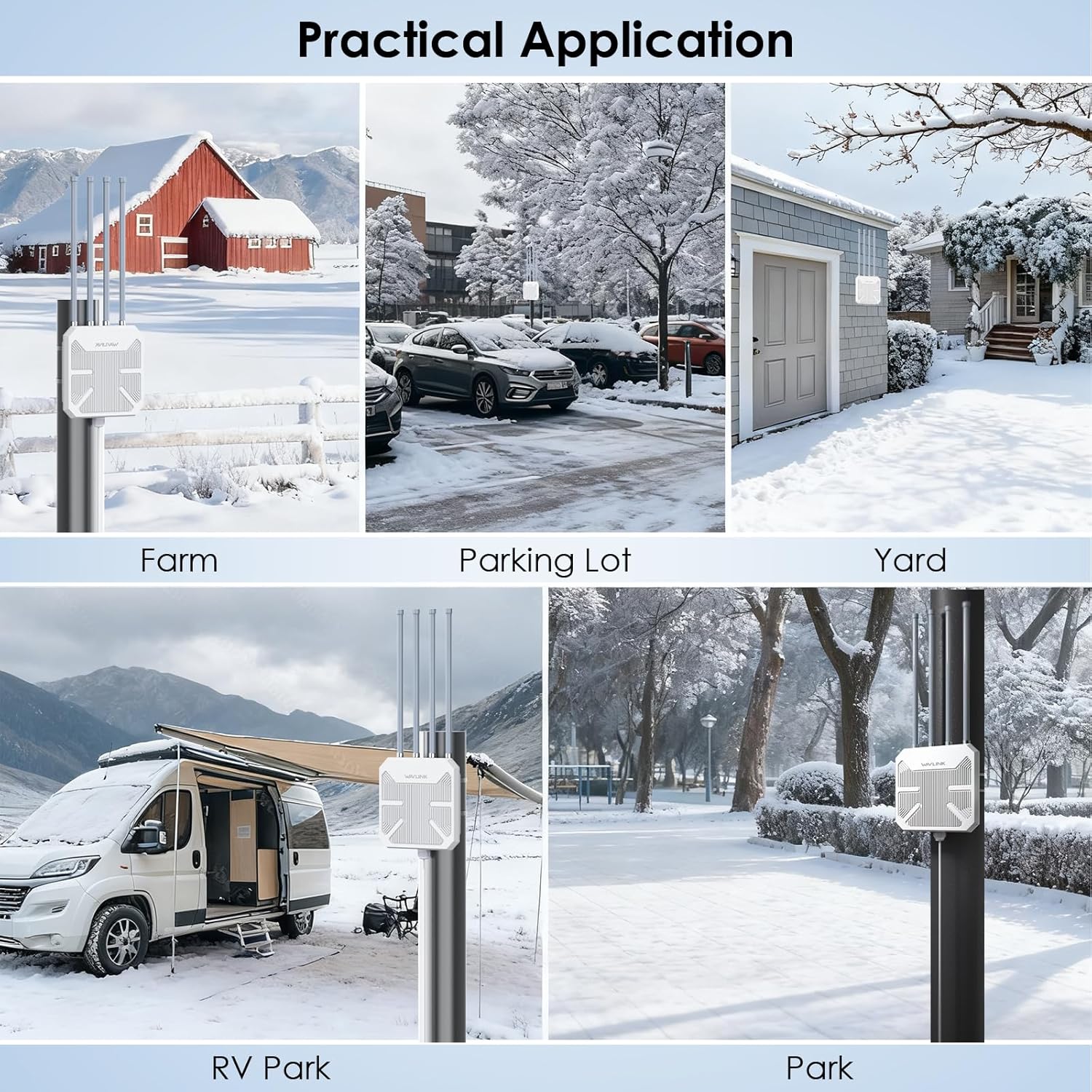 【Seamless WiFi Roaming】The 4x8dBi Fiberglass tube high-gain antennasomnidirectional antennas and two built-in high-power amplifiers provide extreme WiFi coverage and penetration,greatly expanding the WiFi coverage, and eliminating every network dead zone. Design for more strong penetration & longer range coverage, ideal for providing Wi-Fi service in big area such as Home,Camping,Factory, Community, Farm