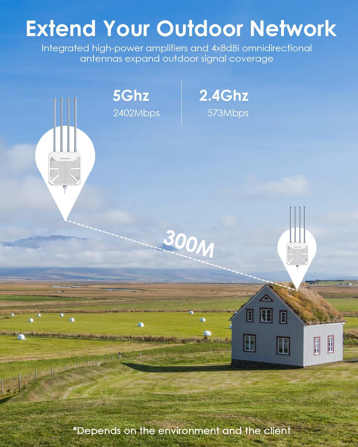 【AX3000, Faster, Farther,More Stable】Features up to 600mW of power and an enhanced receiver design,Up to 256 devices.Supports dual-band maximum speed up to 5GHz 2402Mbps and 2.4GHz 573Mbps, avoiding wireless interference & congestion and offering lightning-fast Internet speed. you can enjoy HD videos, smooth gaming, etc. even outdoors